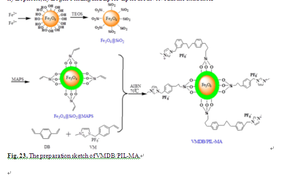 A new polymeric ionic liquid-modified magnetic adsorbent (PIL-MA) was successfully fabricated and used to extract apolar and polar pollutants with magnetic solid-phase extraction (MSPE). The PIL-MA was prepared by simple free radical copolymerization of 1-vinylbenzyl-3-methylimidazolium hexafluorophosphate, divinylbenzene and silica-coated magnetite. Several characterized techniques including infrared spectroscopy, elemental analysis, scanning electron microscopy, transmission electron microscopy and magnetic measurement were used to characterize the PIL-MA. Parabens and aromatic amines were selected as test analytes to investigate the extraction performance of PIL-MA for apolar and strongly polar analytes, respectively. The extraction parameters including the amount of PIL-MA, adsorption time, desorption solvent and time, pH value and ionic strength were optimized thoroughly. At the same time, convenient and sensitive analytical methods for parabens and aromatic amines in real samples were developed by the combination of PIL-MA-MSPE and HPLC-DAD. Results well demonstrate that there are abundant active groups in the PIL-MA and multiply interactions including π-π, hydrophobic, hydrogen-bonding and dipole-dipole are involved in the extraction.