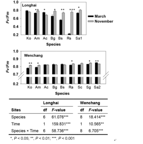 (ΦPSII; mean _ SE Fv/Fm) of mangrove species at two