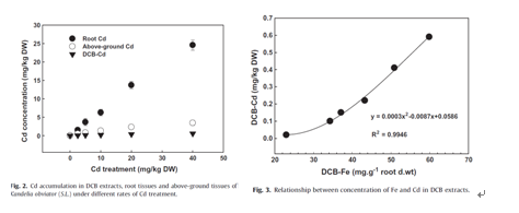 1. the Fe in dithionite–citrate–bicarbonate (DCB) extracts increased with an increasing rate of Cd treatments.