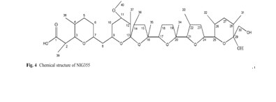 A strain O4-6, which had pronounced algicidaleffects to the harmful algal bloom causing alga Phaeocystisglobosa, was isolated from mangrove sediments in theYunxiao Mangrove National Nature Reserve, Fujian,China. Based on the 16S rRNA gene sequence and morphological characteristics, the isolate was found to be phylogenetically related to the genus Streptomyces and identified asStreptomyces malaysiensis O4-6. Heat stability, pH tolerance, molecular weight range and aqueous solubility weretested to characterize the algicidal compound secreted fromO4-6. Results showed that the algicidal activity of thiscompound was not heat stable and not affected by pHchanges. Residue extracted from the supernatant of O4-6fermentation broth by ethyl acetate, was purified bySephadex LH-20 column and silica gel column chromatography before further structure determination. Chemicalstructure of the responsible compound, named NIG355,was illustrated based on quadrupole time-of-flight massspectrometry (Q-TOF-MS) and nuclear magnetic resonance(NMR) spectra. And this compound showed a strongeralgicidal activity compared with other reported algicides.Furthermore, this article represents the first report of analgicide against P. globosa, and the compound may bepotentially used as a bio-agent for controlling harmful algalblooms.