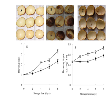Tyrosinase (EC 1.14.18.1), also known as polyphenol oxidase (PPO), is a key enzyme in pigment biosynthesis oforganisms. The inhibitory effects of propyl gallate on the activity of mushroom tyrosinase and effects of propyl gallate on pericarpbrowning of harvested longan fruits in relation to phenolic metabolism were investigated. The results showed that propyl gallatecould potently inhibit diphenolase activity of tyrosinase. The inhibitor concentration leading to 50% activity lost (IC50) wasdetermined to be 0.685 mM. Kinetic analyses showed that propyl gallate was a reversible and mixed type inhibitor on thisenzyme. The inhibition constants (KIS and KI) were determined to be 2.135 and 0.661 mM, respectively. Furthermore, the resultsalso showed that propyl gallate treatment inhibited activities of PPO and POD in pericarp of harvested longan fruits, andmaintained higher contents of total phenol and flavonoid of longan pericarp. Moreover, propyl gallate treatment also delayed theincreases of browning index and browning degree in pericarp of harvested longan fruits. Therefore, application of propyl gallatemay be a promising method for inhibiting tyrosinase activity, controlling pericarp browning, and extending shelf life of harvestedlongan fruits.