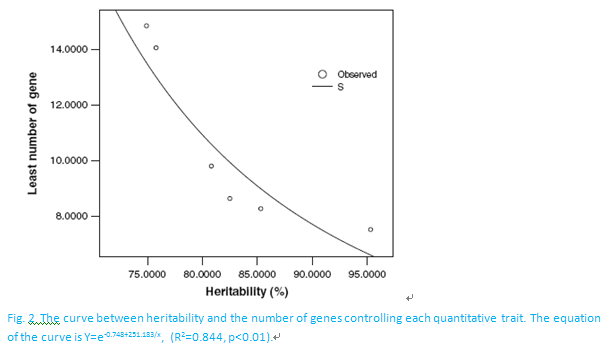 The first doubled haploid (DH) population ofPorphyra haitanensiswas created by crossing a wild-type line with a red type, artificial pigmentation, mutant line, by means of single somatic cell clone cultivation. Six quantitative traits (frond length (FL), frond width (FW), frond thickness (FT), fresh weight (W), growth rate of frond length (LGR), and growth rate of fresh weight (WGR)) from the DH population were analyzed. The frequency of each quantitative trait is in accordance with a normal distribution. Variable coefficients were between 20.43% and 57.35%, and while the mean of each quantitative trait was between the parents, it was closer to the paternal for six traits. Correlation analysis among the six traits showed significant positive correlations between FL and W, FW, and W, LGR and W, and WGR and W. There appears to be no correlation between FT and W. Heritability, number of genes controlling each quantitative trait and gene interactions, were also analyzed. Heritability of the six traits was greater than 70%, and heritability was not correlated with the number of genes controlling the corresponding quantitative trait. Frond thickness was the most heritable trait (95.30%), but this had the fewest control genes (7.52). According to the estimated coefficients of skewness and kurtosis, gene interaction was absent for LGR, but complementary gene interaction was observed in FW and W. In FL, FT, and WGR it is possible that complementary or duplicate gene interaction is involved. Our results enrich our understanding ofPorphyragenetics and will help determine selection and breeding procedures forP. haitanensis.