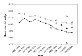 Chen L., Wu F.H., Liu T.W., Chen J., Li Z.J.,Pei Z.M., Zheng H.L.*Environmental Pollution, 2010.158: 3219-3224To assess the suitability of dendrochemistry as an indicator of soil acidification, soil chemistry and tree ring information ofAbies fabriwere measured at two distinct sites (severe acid deposition site-Emei Mountain and clean site-Gongga Mountain) of the subalpine forest ecosystems of western Sichuan, southwest China. The actual soil acidity (pH) was significantly correlated with some of the recent xylem cation (Ca, Mg, Mn, Al, Sr and Ba) concentrations and their molar ratios. Xylem Ca/Mg and Ca/Mn ofAbies fabriwere ultimately selected to reconstruct the historical changes of soil pH in Emei Mountain and Gongga Mountain, respectively. The validity of those rebuild was also verified to a certain extent. We conclude that xylem cation molar ratios ofAbies fabriwere superior to the single cation concentration in soil acidity rebuild at the study sites due to normalizing for concentration fluctuations.