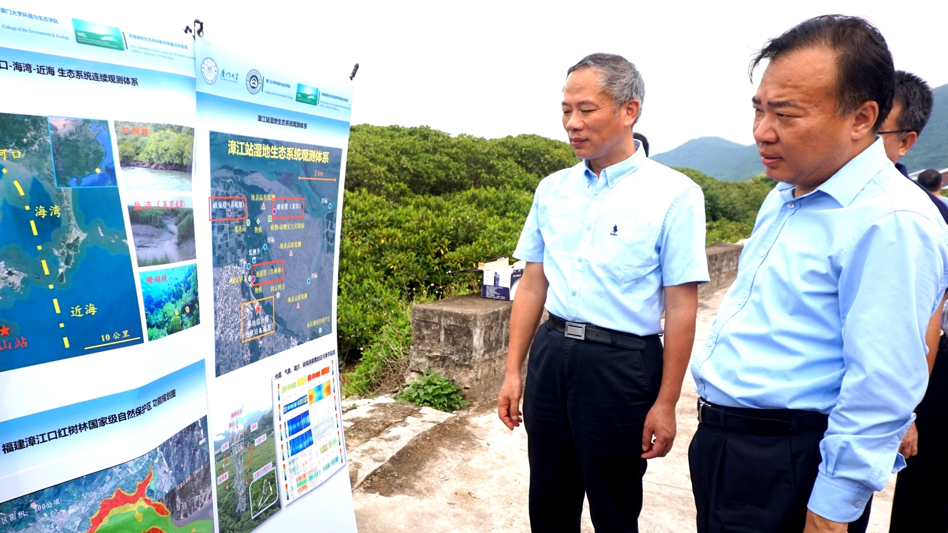 7月2日,校党委书记张彦率队前往漳州市云霄县,视察漳江口湿地生态系统野外科研基地(以下简称“科研基地”)和漳江口红树林湿地生态系统福建省野外科学观测研究站(以下简称“观测研究站”)建设工作。厦门大学校长助理张建霖,科技处处长谭忠、资产与后勤事务管理处处长苏清伟、校办副主任宋友良、教务处副处长谢火木、研究生院副主任罗雄彪、基建处副处长张晓云、以及环境与生态学院副院长曹文志、王新红等陪同前往。