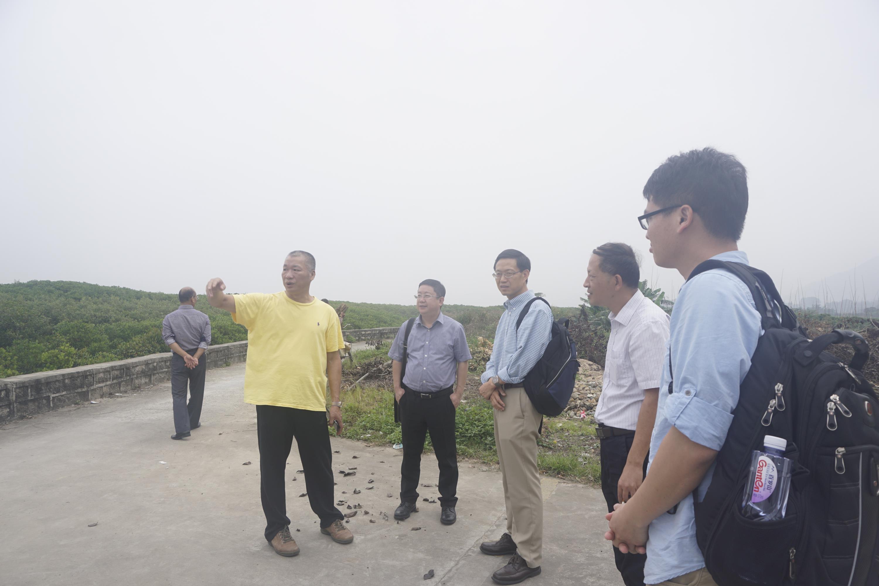 经过两个半小时的车程,基地工作小组于中午抵达基地所在的云霄县东厦镇竹塔村,随即和漳江口红树林国家级自然保护区管理局(以下简称红树林保护区)林铭儒局长一起,考察基地现场状况,并与红树林保护区就土地报批手续办理情况进行沟通。我校与红树林保护区有着密切的合作关系和深厚的合作基础,对保护区的科研、科普教育以及晋升国家级自然保护区等给予不可或缺支持,红树林保护区管理局在我校科教工作开展、基地项目立项、土地报批手续办理等方面给予大力支持,拟建的基地位于红树林保护区旁。