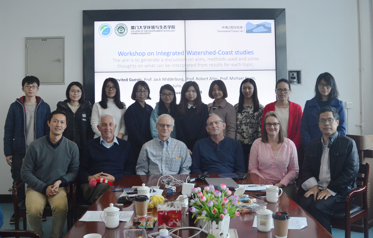 1月6日,在现场考察的基础上,陈能汪教授主持召开“流域-近海系统研究”研讨会,以上三位专家,以及来自美国康州大学的Craig Tobias团队的Julie Granger(氮同位素专家)参加了本次研讨会。与会人员听取了课题组一系列研究报告,就研究热点、难点和技术挑战进行了热烈讨论与交流,同时也针对滨海湿地和海陆界面生态环境研究给出很多建设性的意见和建议。会后,Jack Middelburg教授进一步与师生们深入讨论合作研究计划和实验方案。