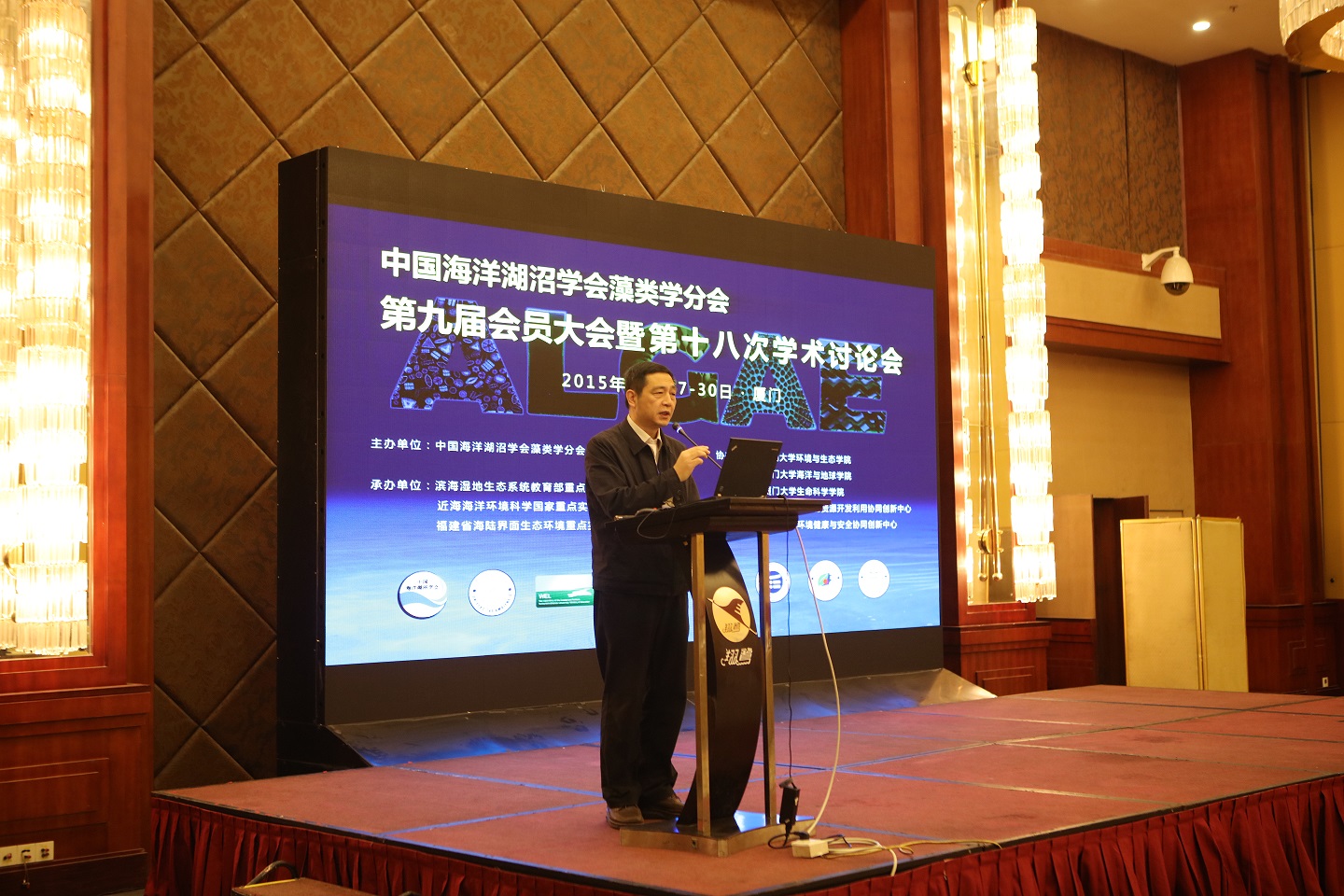 2015年11月28-30日,中国海洋湖沼学会藻类学分会第九届会员大会暨第十八次讨论会在厦门隆重召开。本次会议由中国海洋湖沼学会藻类学分会主办,厦门大学滨海湿地生态系统教育部重点实验室、近海海洋环境科学国家重点实验室及福建省海陆界面生态系统重点实验室承办;厦门大学环境与生态学院、海洋与地球学院及生命科学学院协办。中国科学院水生生物研究所赵进东院士、厦门大学焦念志院士、中国海洋湖沼学会常务副秘书长任建明、藻类学分会第八届理事长宋立荣研究员参加了会议。本次会议共迎来了全国130多家单位及境外4所高校,约700名从事藻类学领域研究的专家学者及研究生参加,规模空前。在本次会议上,中国海洋湖沼学会藻类学分会完成理事会换届,并开展了藻类学研究领域高水平的学术交流。11月28日上午大会开幕,藻类学分会的宋立荣理事长首先为大会致开幕词,他代表会议主办方对各位领导和参会代表表示欢迎与感谢,并提到:因为藻类学会的创始人之一、我国著名海洋生物学家曾呈奎先生是毕业于厦大,此次会议由厦门大学承办有着特别的意义。在谈到此次会议的主旨时说到,藻类学会走过了36年,进入了快速稳定的发展时期,但在国家科技体制改革的大格局下,学会的发展也要寻找新的着眼点,布局未来。