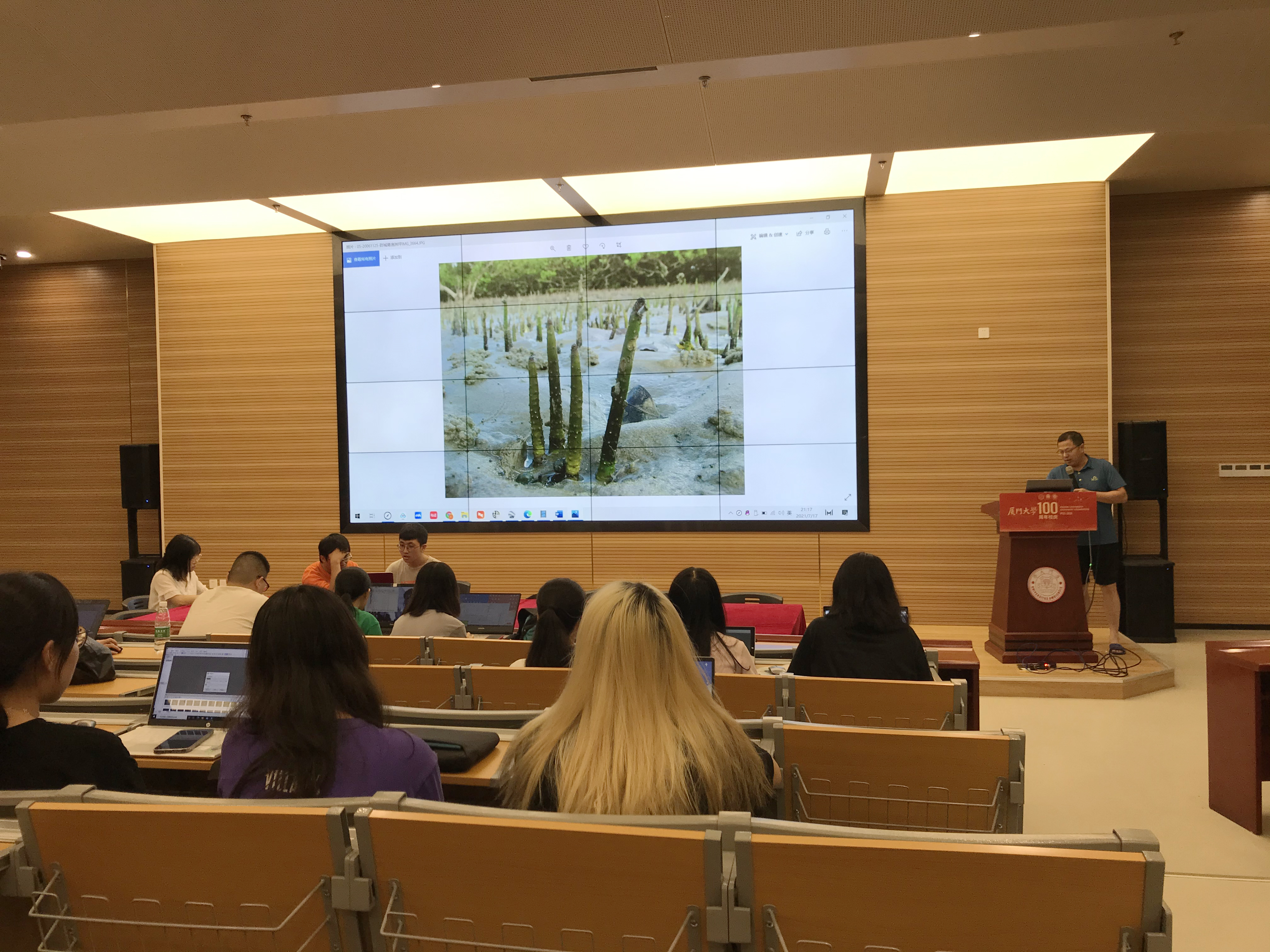 王文卿教授在基地大楼报告厅对2018级生态学专业本科生进行实习培训