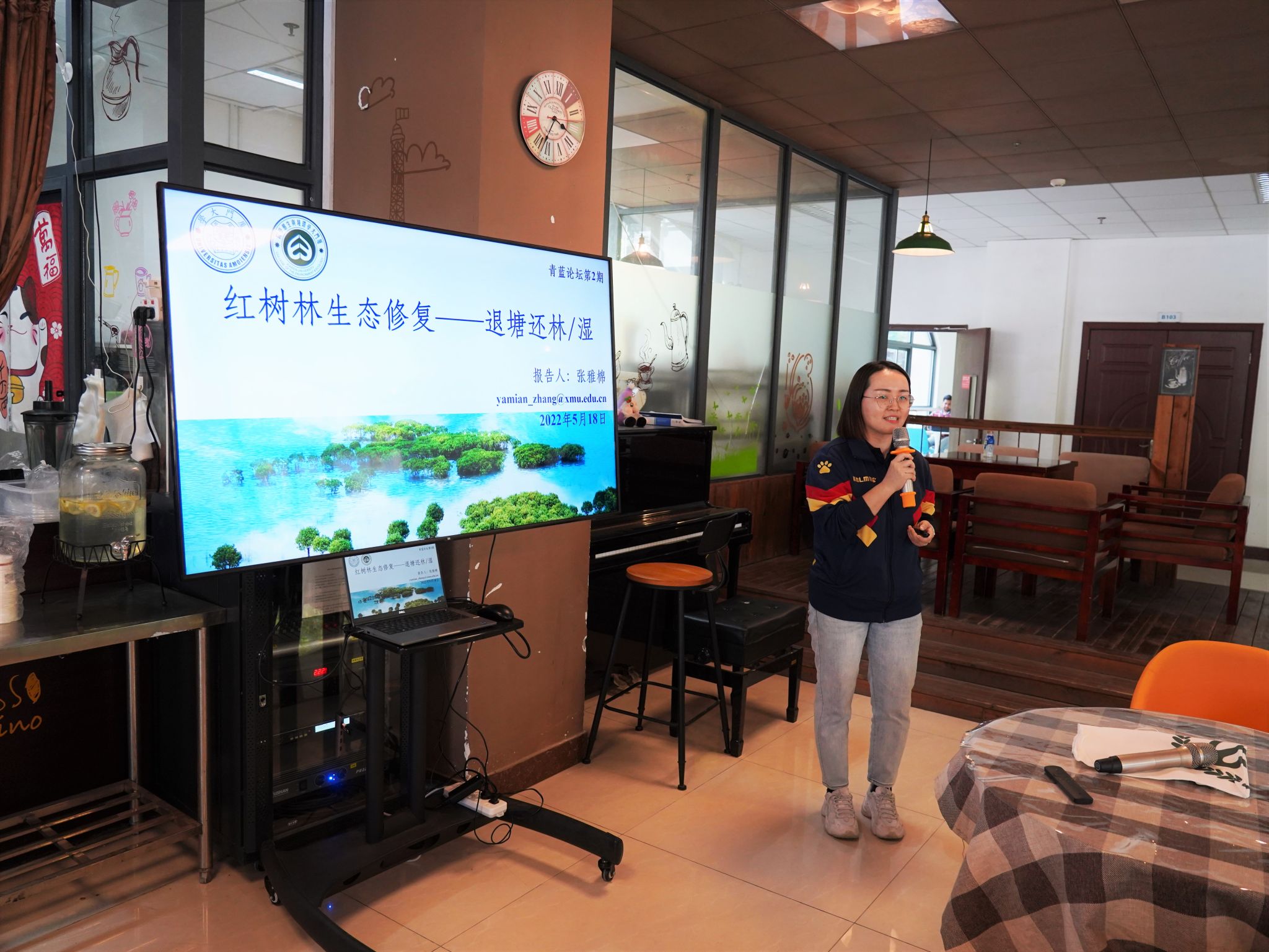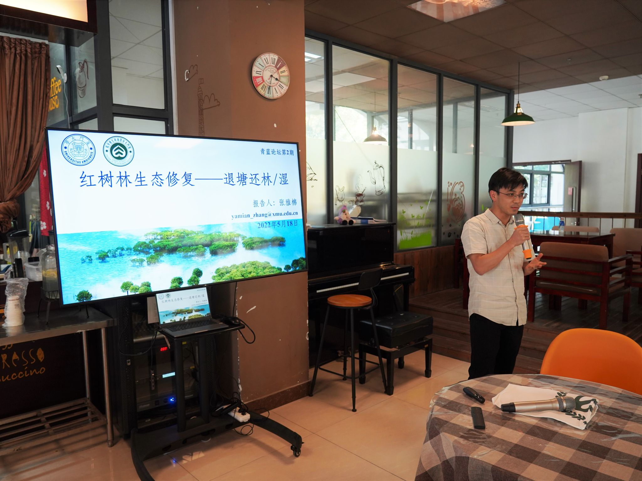 5月18日下午,环境与生态学院以青年学者为主角的特色学术交流活动——青蓝论坛第二期,在学院咖啡厅圆满举办。本期论坛由张雅棉高级工程师为大家带来题为“红树林生态修复——退塘还林/湿”的学术报告,论坛吸引了数十名青年教师、研究生参加。