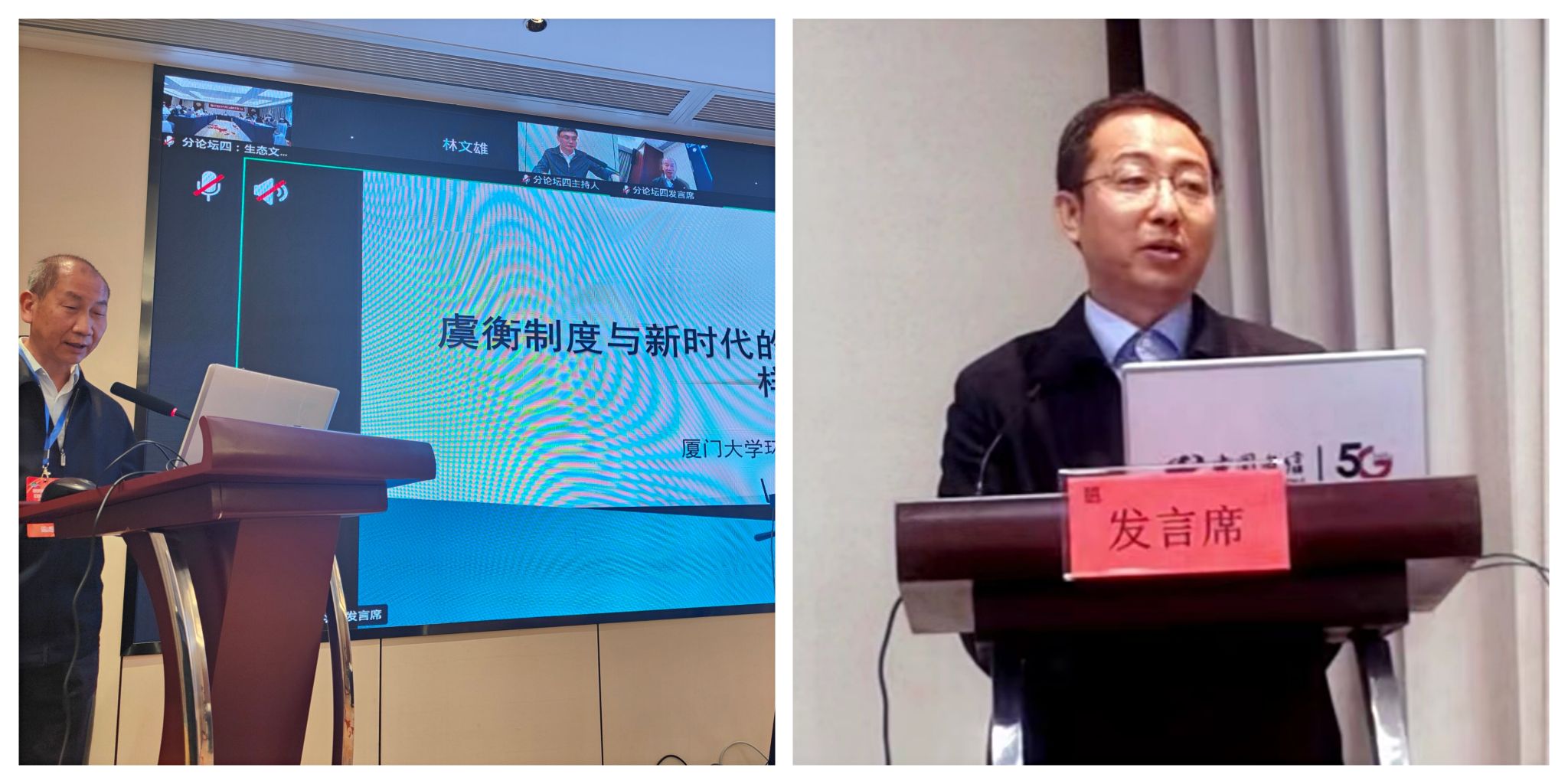 省委常委、宣传部部长、福建省习近平新时代中国特色社会主义思想研究中心执行主任张彦主持主旨报告阶段。吕永龙受邀在主论坛上做了题为“生态文明与绿色发展”的主旨报告。他从绿色发展是必由之路、绿色发展路径的选择问题和城乡融合与生态现代化等方面,以自身研究和国内外鲜活案例,阐述了根据生态学原理,利用现代科技手段,不断推进生态文明建设的重要性。李振基和黄凌风也分别在分论坛上做了题为“虞衡制度与新时代的生物多样性保护”“绿水青山就是金山银山的科学基础与理论逻辑”的重点发言。他们的报告受到了与会领导和专家学者的一致好评。