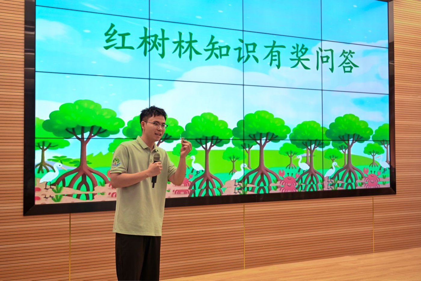 红树林知识互动问答环节将现场气氛推向了高潮。主持人提出的一个个关于红树林的问题,如红树林的特有繁殖方式、常见的红树植物种类等,都引发了同学们的积极响应。大家纷纷举手,踊跃参与抢答,活动在充满鼓励与科普的氛围中进行,知识在热烈的互动中传递,保护的意识在心中萌芽。