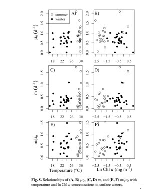 (μ0) and microzooplanktongrazing rates (m). During summer, both μ0 andm were