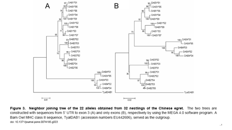 potential MHC DAB loci were characterized in the genome of this egret and all